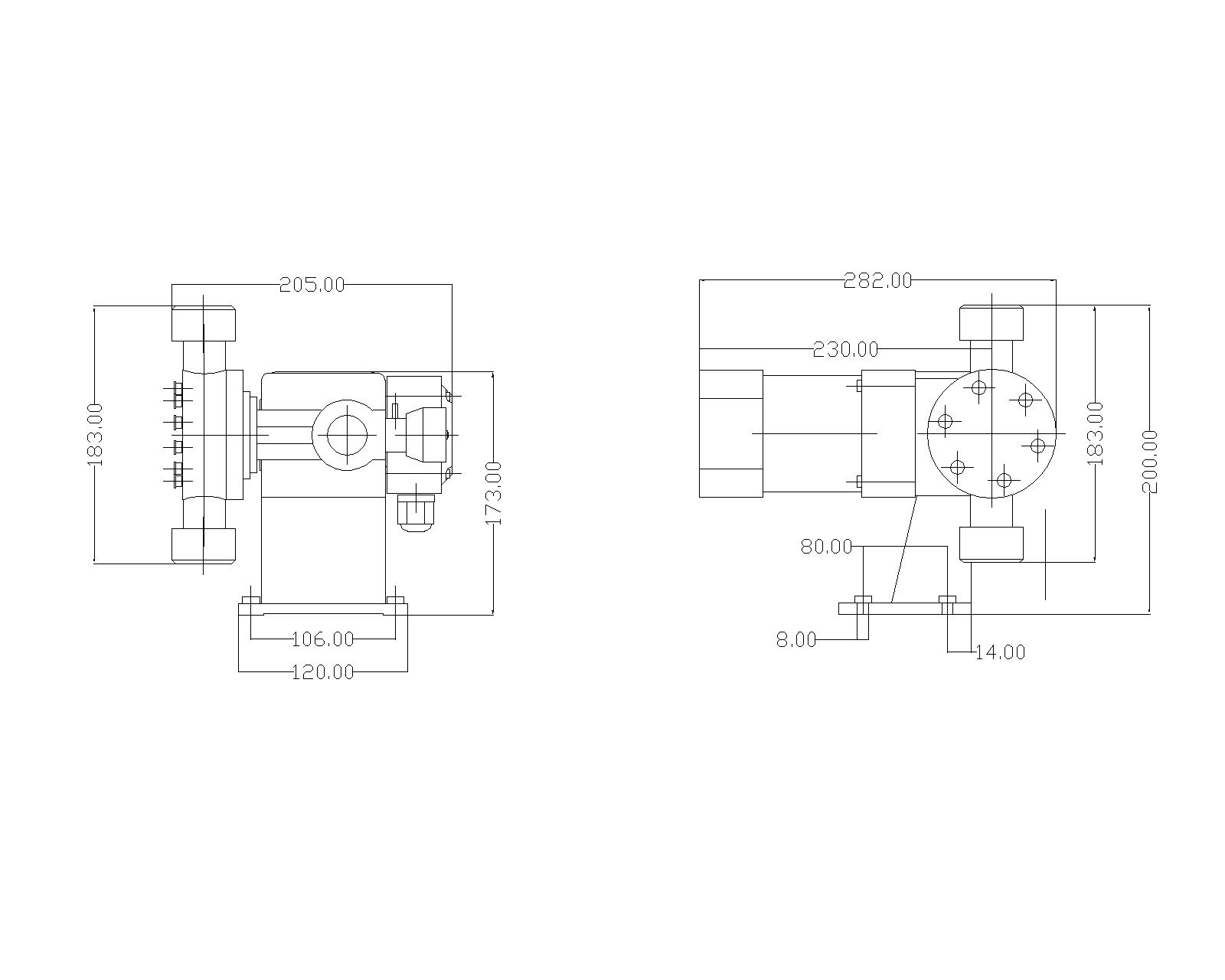 型號 | 出口壓力 | 流量 | 沖程次數 | 膜片直徑 | 電機功率 | 重量 | 連接方式 | |||