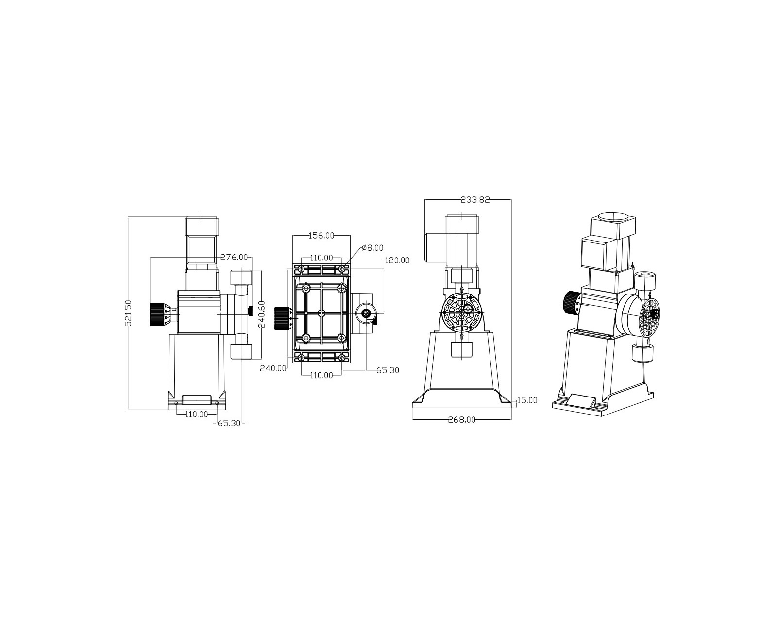 型號(hào) | 出口壓力 | 流量 | 沖程次數(shù) | 膜片直徑 | 電機(jī)功率 | 重量 | 連接方式(GN) | |||