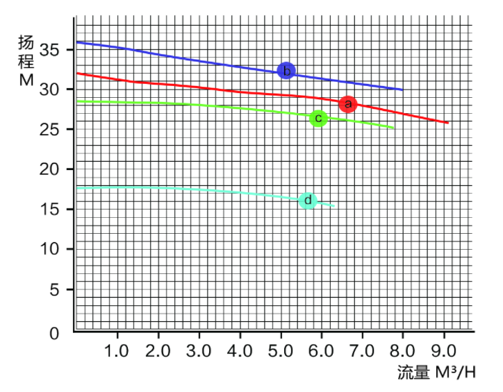 型號(hào) | 曲線 | 進(jìn)口口徑 | 出口口徑 | Motor電機(jī) | 標(biāo)準(zhǔn)流量 | 標(biāo)準(zhǔn)揚(yáng)程 | 重量 | ||